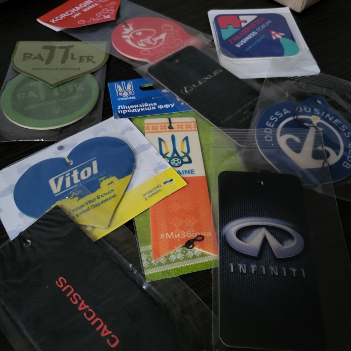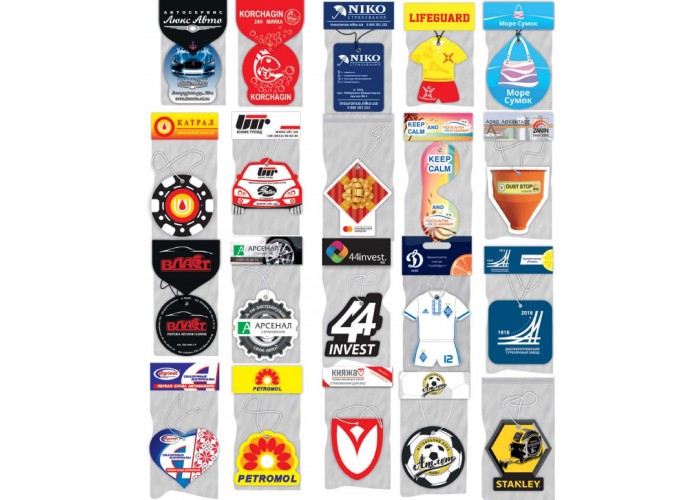 Ароматизатор з логотипом на замовлення має дуже широкий спектр призначення. Ароматизатори з логотипом можна дарувати та продавати. Друк логотипу на ароматизаторах використовується як парфумерія для простору шоурумів, готелів та кав'ярень.