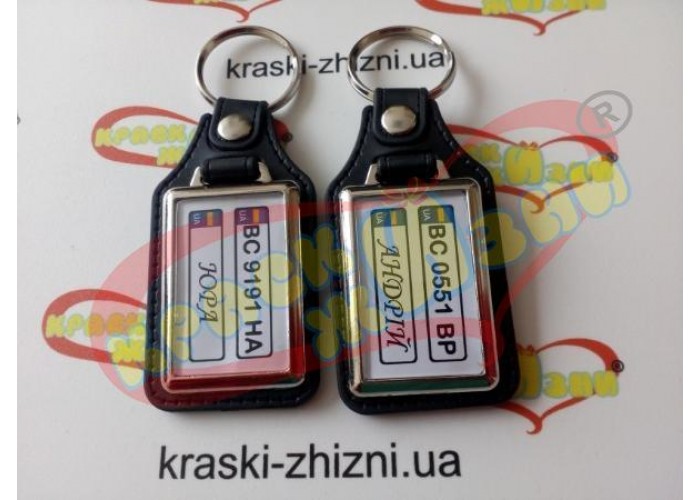 Матеріал брелока – метал, шкіра. Друк односторонній повнокольоровий. Нанесення стійке до зовнішнього середовища, т.к. закрито захисною лінзою.