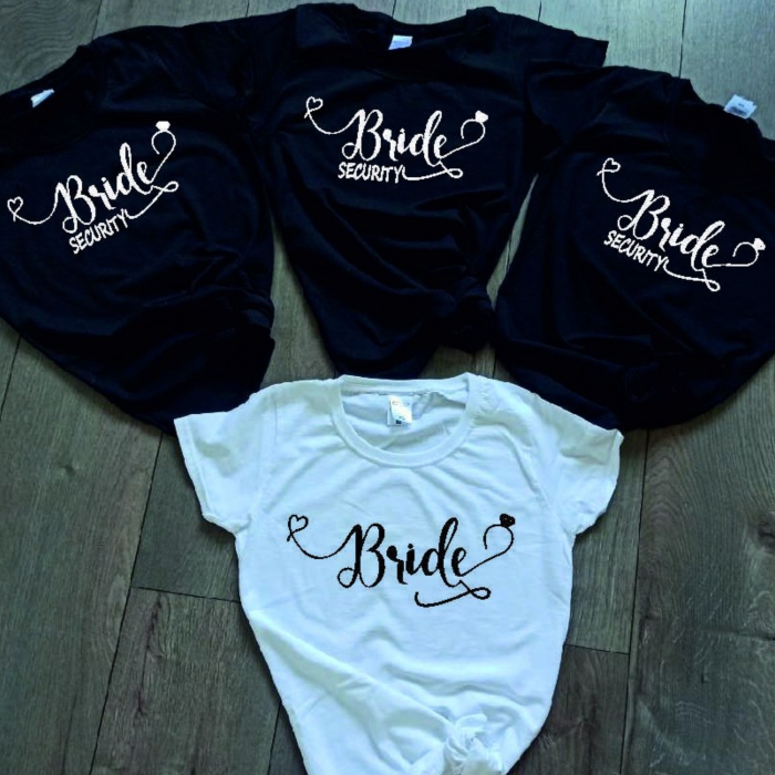 Футболка для дівич-вечора Bride відмінний спосіб виділити вечірку і зробити фотографії з дівич-вечора оригінальними.