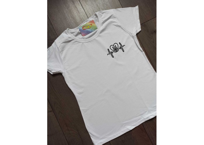 Патріотична футболка Серце б'ється за Україну. Ця футболка з українською символікою може бути допрацьована за індивідуальним бажанням.