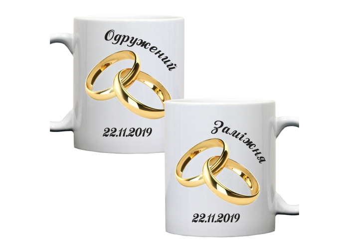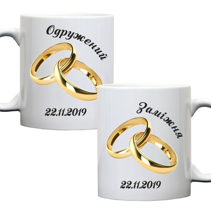 Парні чашки мають спільну ідею дизайну, малюнки та тексти на парних гуртках мають підкреслюють єднання двух люблячих сердець. Парні горнятка підійдуть для одружених пар та закоханих. За бажанням ви можете безкоштовно виправити текст - додати свої імена, дату та/або спільну фотографію зі зворотного боку чашок.