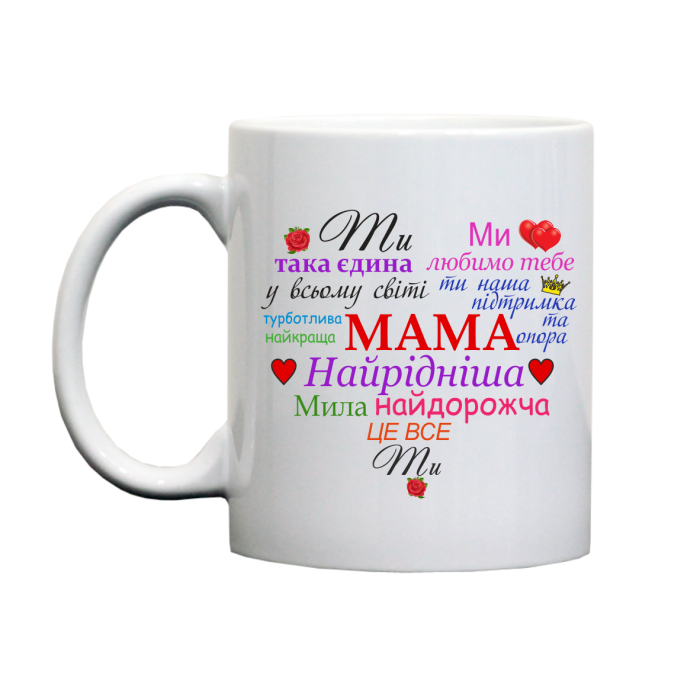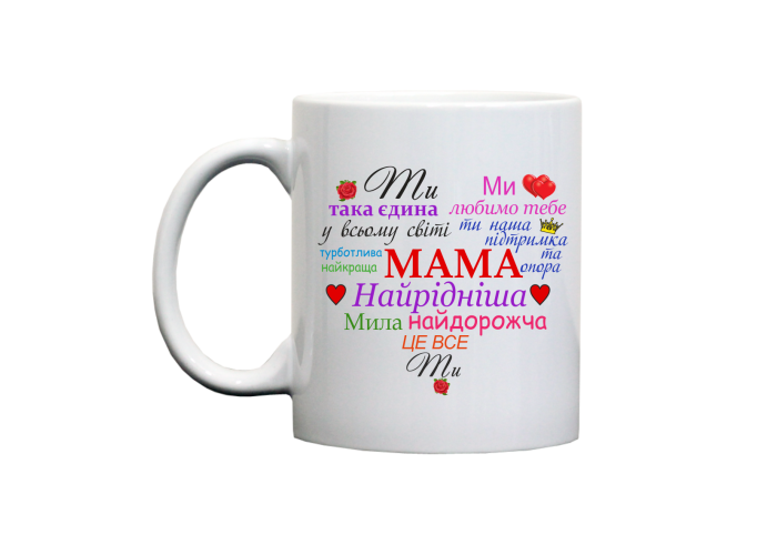 У вартість входить повно кольоровий друк на чашці. Безкоштовно у дизайн додається будь-яке зображення та текст за вашими побажаннями. Надане вами зображення підрізається у розмір та розміщується без його обробки. За потреби, за додаткову плату можна прибрати фон з фото або окремі елементи на фото. Також безкоштовно можна додати у макет будь-який підпис, ім'я мами чи дату. Переробка шаблону не входить у вартість та оплачується додатково.
