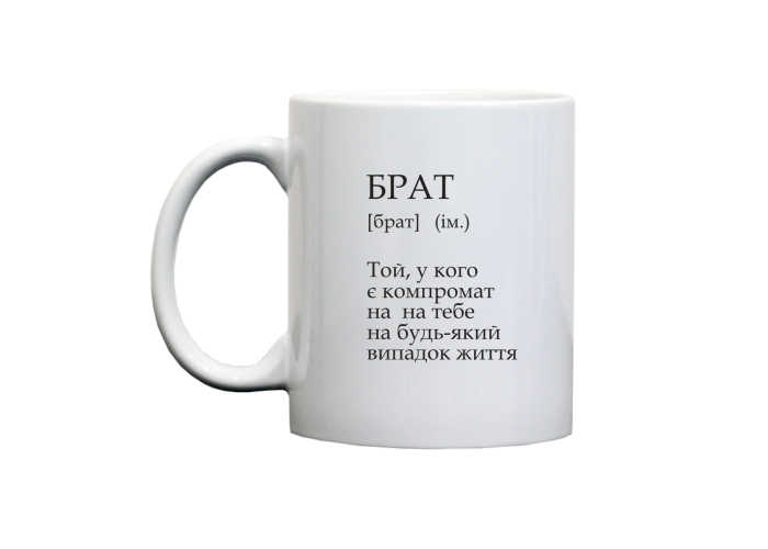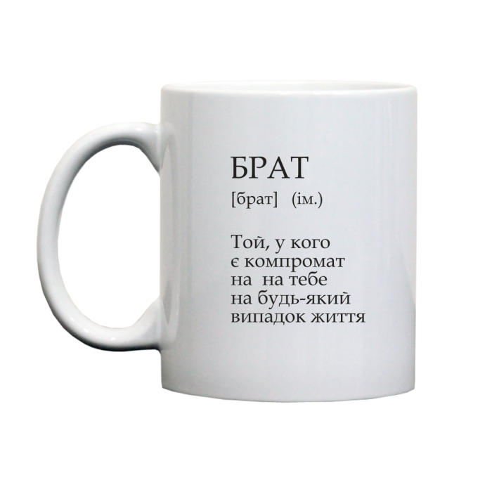 Гуртка для брата з прикольним написом, яка гарантовано підніме настрій людині з почуттям гумору, а потім та буде корисним посудом у повсякденному користуванні.