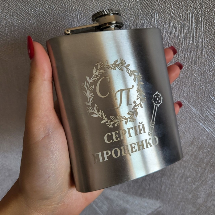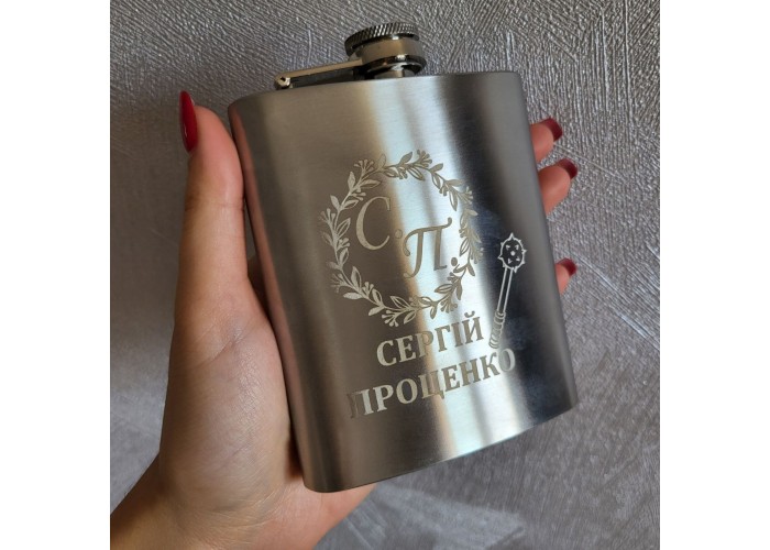 Іменна фляга з ініціалами, нанесеними методом гравіювання – чудовий спосіб підкреслити власну індивідуальність та статус.