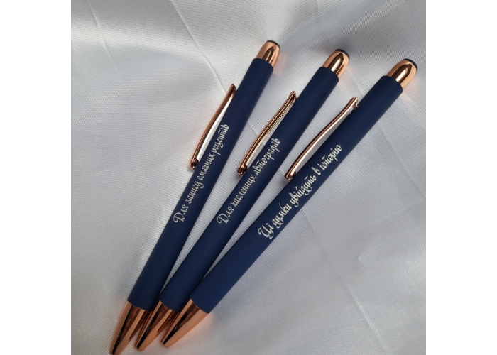 Ціна вказана за одну ручку, покриття Soft touch та будь-яким написом з одного боку при замовленні мінімального тиражу. Можливе гравіювання другої сторони (другого місця) на ручці.