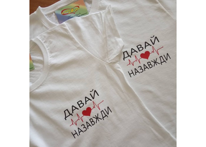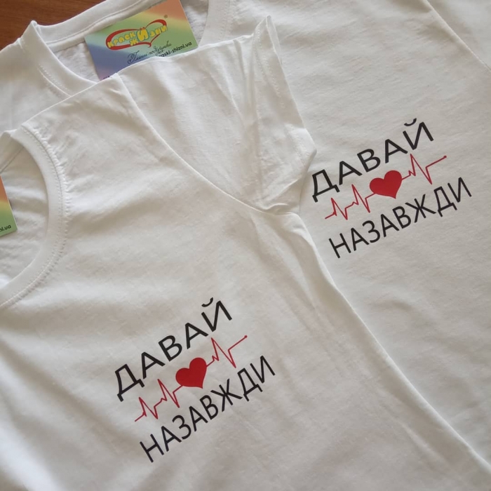 Парні футболки Давай назавжди - хороший і практичний подарунок для двох. Це креативні футболки для закоханих, котрі приємно одягати на відпочинку, використовувати на фотосесії, а потім із задоволенням носити кожен день.