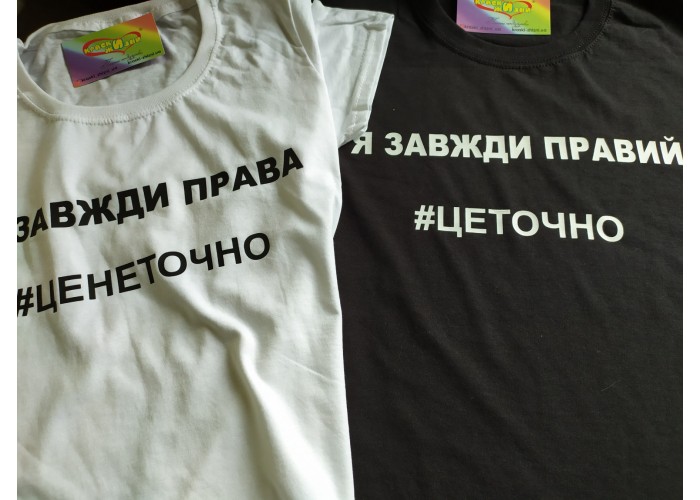Парні футболки Я завжди правий / Я завжди правий - хороший і практичний подарунок для двох. Це креативні футболки для закоханих, котрі приємно одягати на відпочинку, використовувати на фотосесії, а потім із задоволенням носити кожен день.