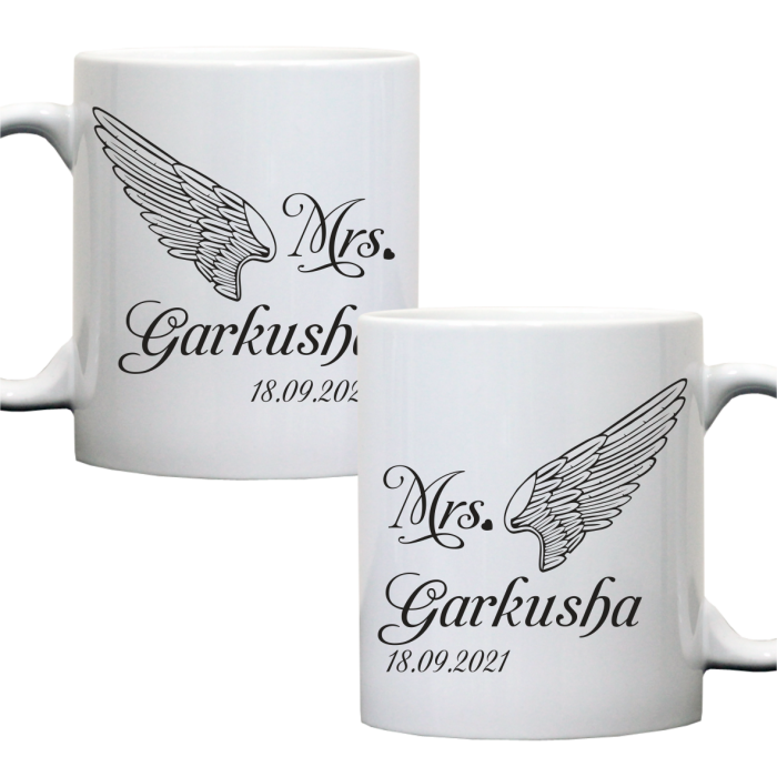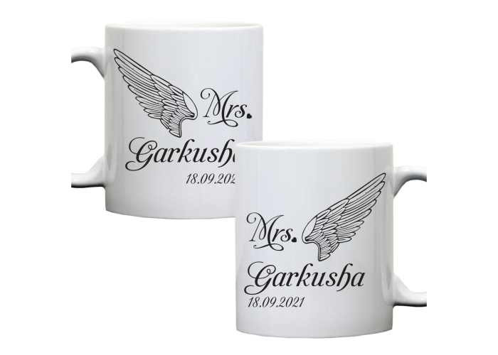 Парні чашки мають спільну ідею дизайну, малюнки та тексти на парних гуртках мають підкреслюють єднання двух люблячих сердець. Парні горнятка підійдуть для одружених пар та закоханих. За бажанням ви можете безкоштовно виправити текст - додати свої імена, дату та/або спільну фотографію зі зворотного боку чашок.