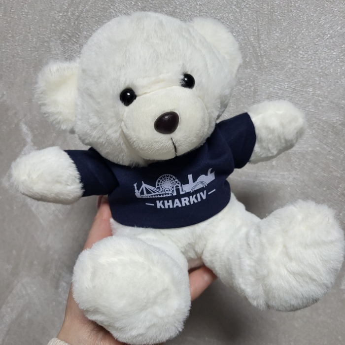 Сувенірний ведмедик з колекції Kharkiv est 1654 - можна подарувати дітям та дорослим. Колір футболки та колір тексту на ведмедику можна обирати. Ваші побажання будь ласка пишіть у коментарях.