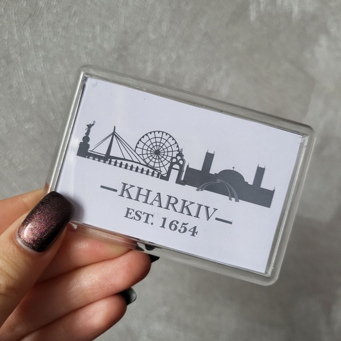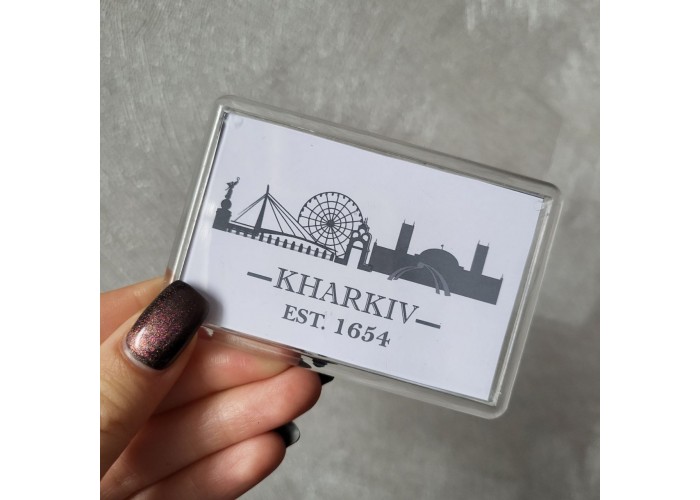 Сувенірний магніт Kharkiv est 1654 - магніт на холодильник, на якому зображені основні видатні місця міста Харкова. Завдяки магніту, розміщеному на зворотному боці корпусу, сувенірний магніт легко кріпиться до металевих поверхонь.